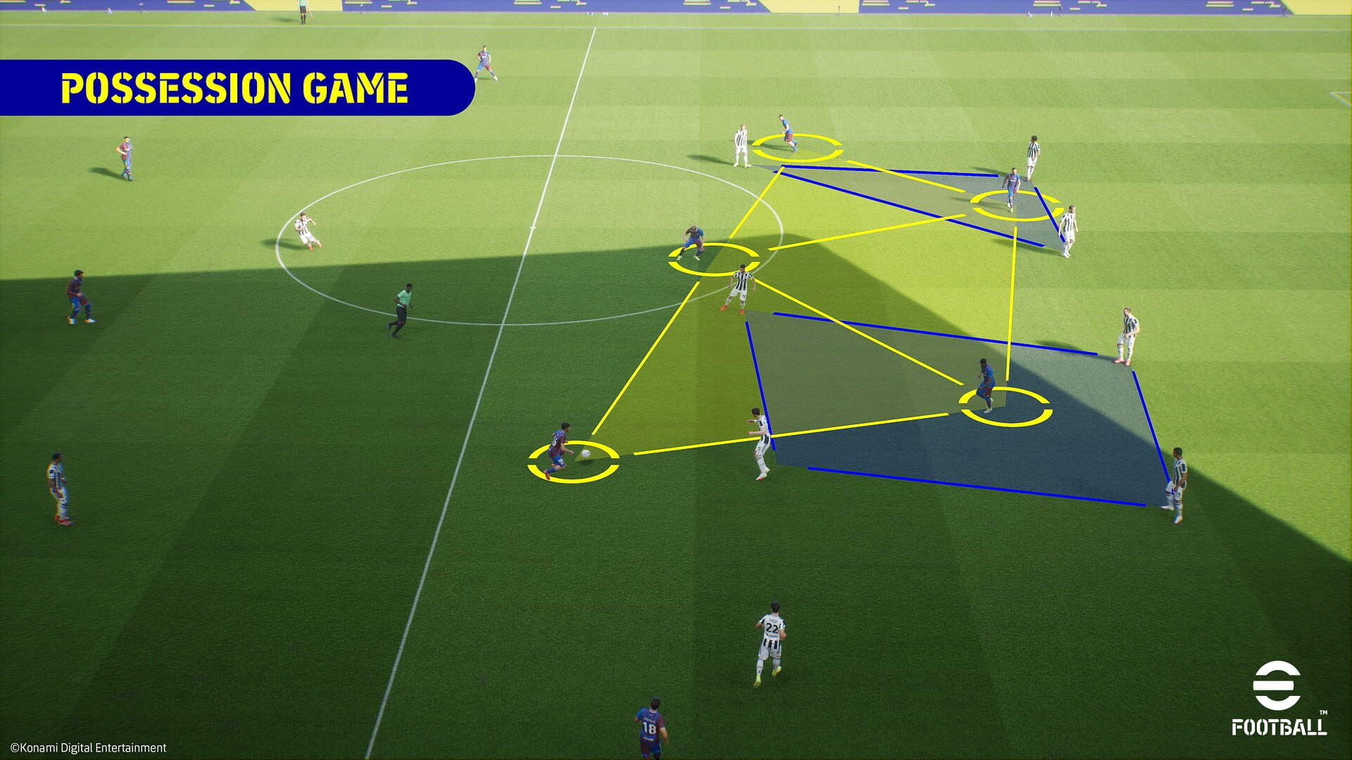 Players will be able to control the strength of kicking the ball as well as determining dribbling speed; from a knock-on all the way to a full dash, just as in real football. In addition, on PlayStation5, eFootball will make use of the controller’s haptic feedback and adaptive triggers to feel the difference of player movements. With greater freedom to control how the player will trap the ball, each play becomes a mind game. A wide array of dribbles and body feints are also available with intuitive commands. In combination, these ensure that every single duel offers an exciting moment for both attacker and defender.